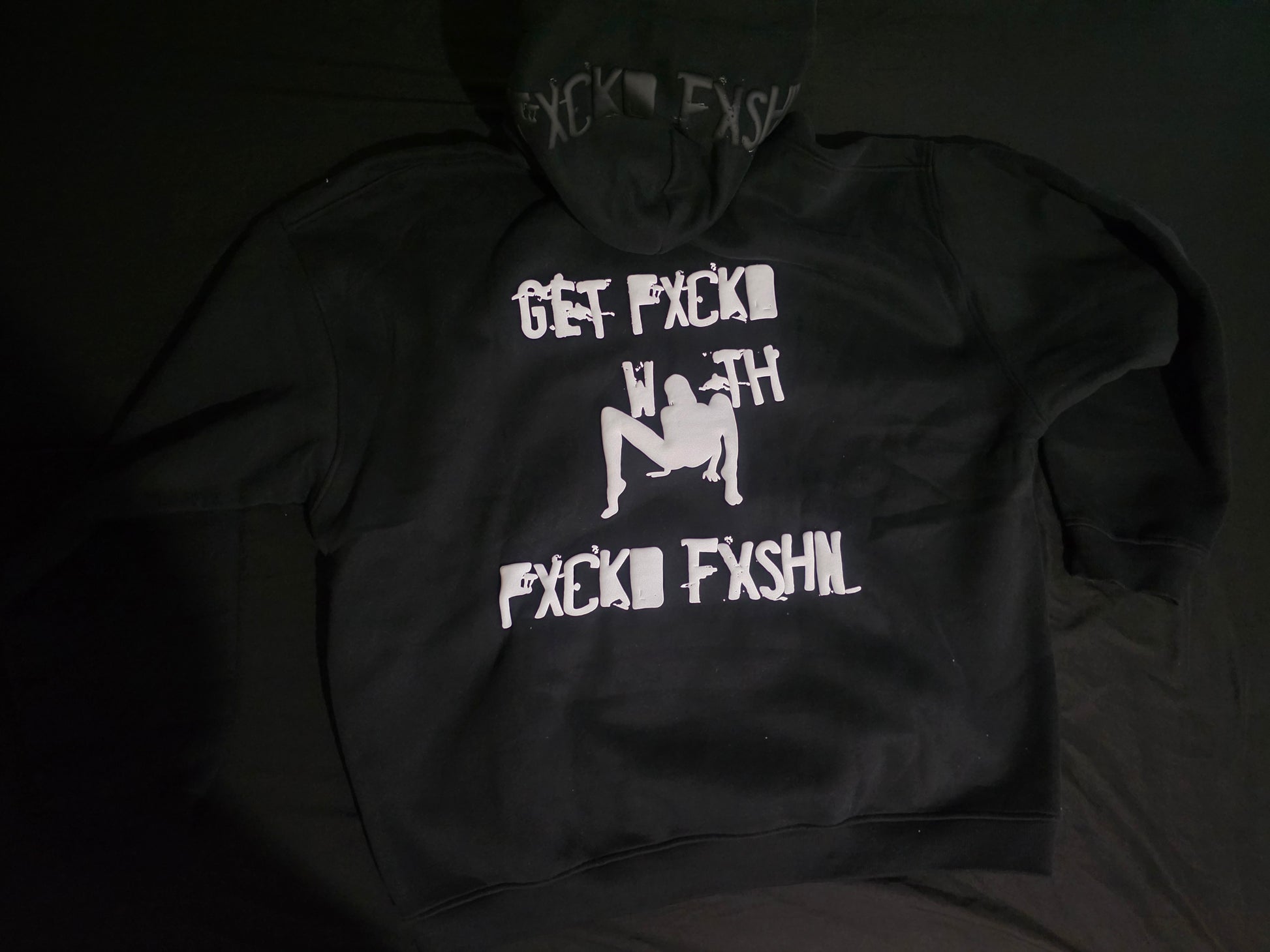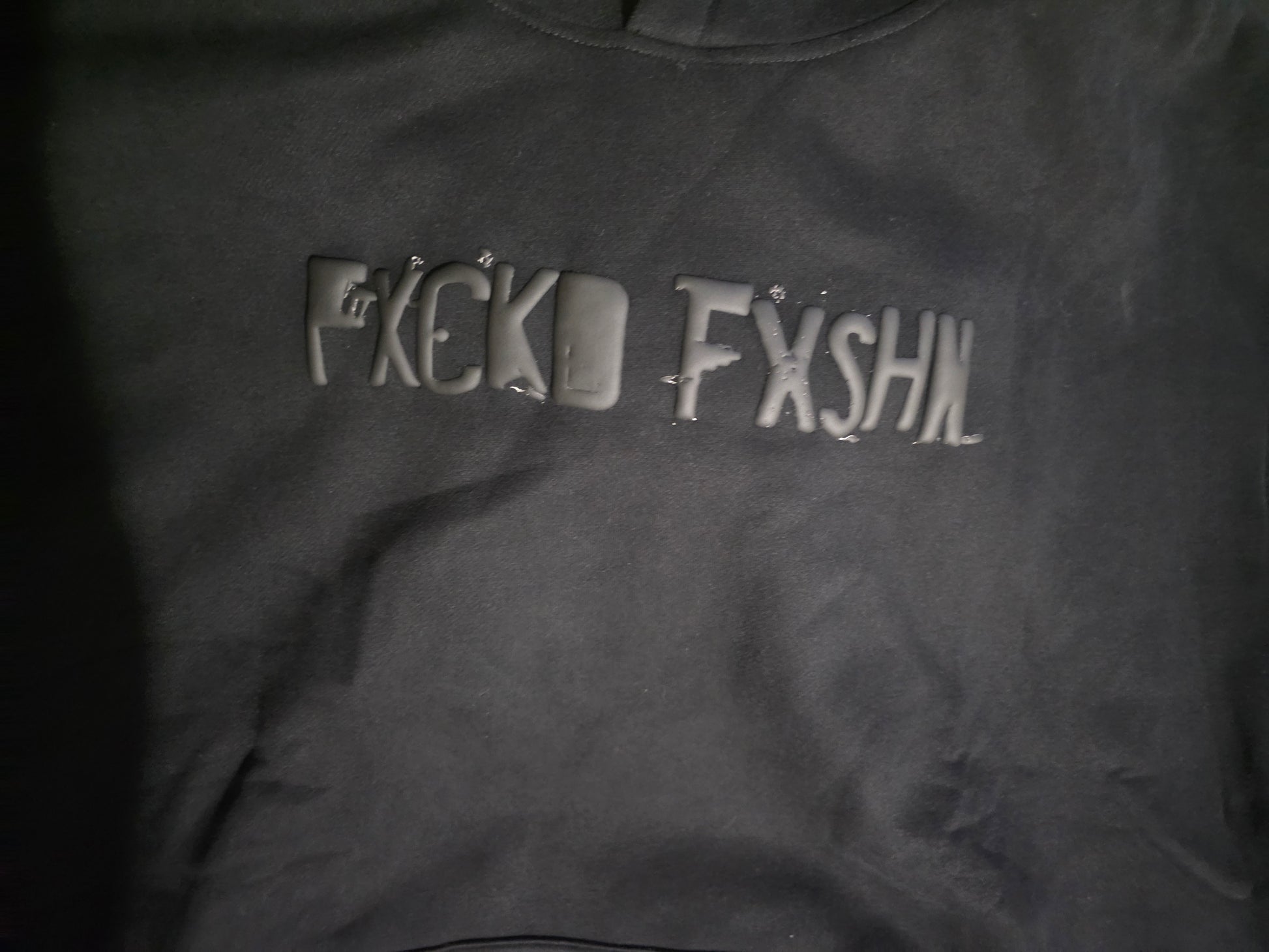 450gsm premium high quality hoodie with front pocket. FXCKD FXSHN 3D puffed letters on the front, hood, and the back of this unique heavy weight product.